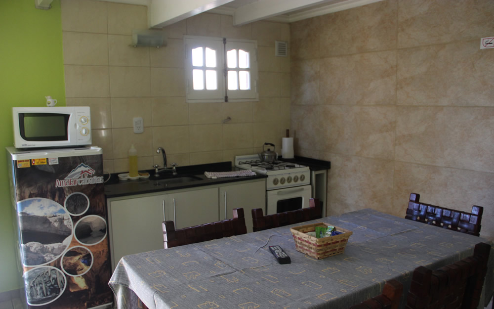 Como equipamiento poseen microondas, Cocina de cuatro hornallas (y horno), vajilla completa, microondas, heladera, tostadora eléctrica, TV LCD 32” c/servicio de Tv local (CTC), servicio de mucama diaria, elementos de toilette y secador de pelo; Blanco: toallas (exclusiva para la cabaña), que se cambian cada dos días y sábanas cada tres. Calefacción gas natural de tiro balanceado. Cada cabaña posee cochera cubierta individual a la entrada de la misma y Parrilla individual (churrasqueras).